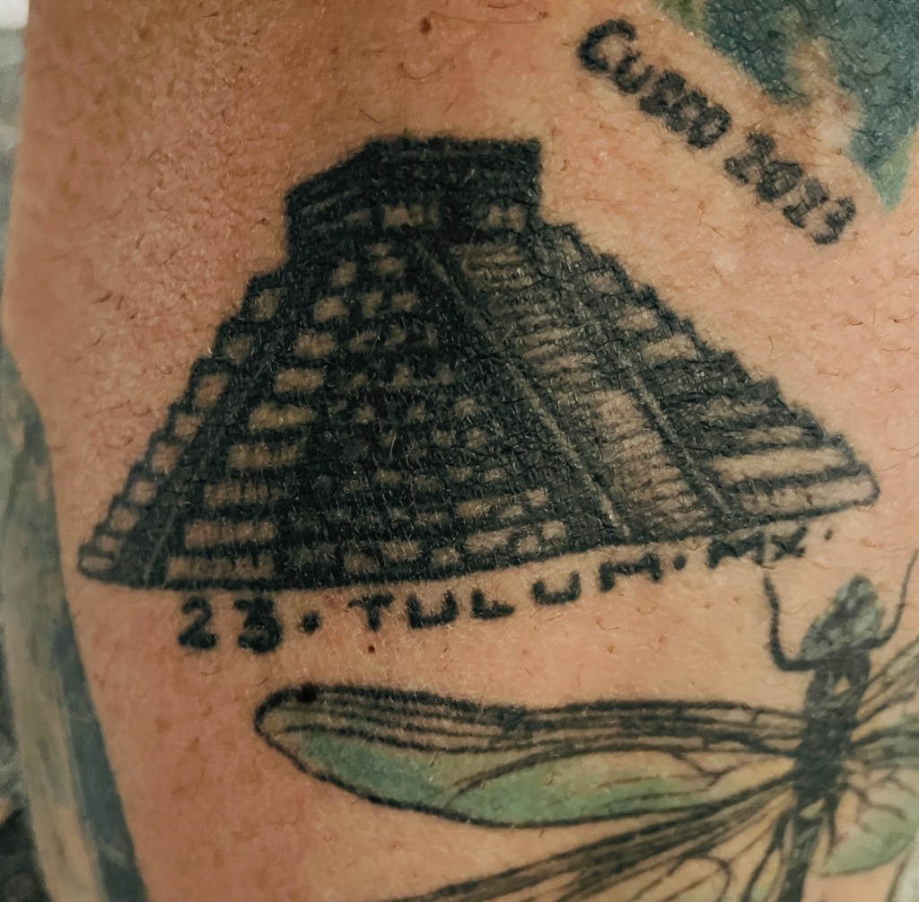 Travel tattoos from around the world. Prague, Tasmania, Barcelona, Switzerland, Mexico (Baja race), Tialand, Singapore, New Zealand, Japan, Bali, Australia, Point Break, Peru, Tulum-MX, Bogota.